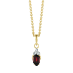 Anhänger aus 8 kt Gold, ovaler Granat mit weißem Topas. Die Kette ist versilbert und hat eine Länge von 42-45 cm