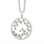 Silberner Halskettenkreis mit weißem Zirkonia am Rand und grün wie Blätter in der Mitte Maße: 25 mm Durchmesser Die Kette ist silbern und hat eine Länge von 42-45 cm