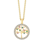 Lebensbaum Kette vergoldet, Kreis mit Zirkonia in verschiedenen Farben