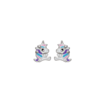Silberne Ohrstecker rhodiniertes Einhorn mit weißer/rosa/blauer bleifreier Emaille.