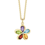 Halskette Blume aus 8 kt Gold mit Amethyst, blauem Topas, Citrin, Granat, Peridot und Zirkonia
