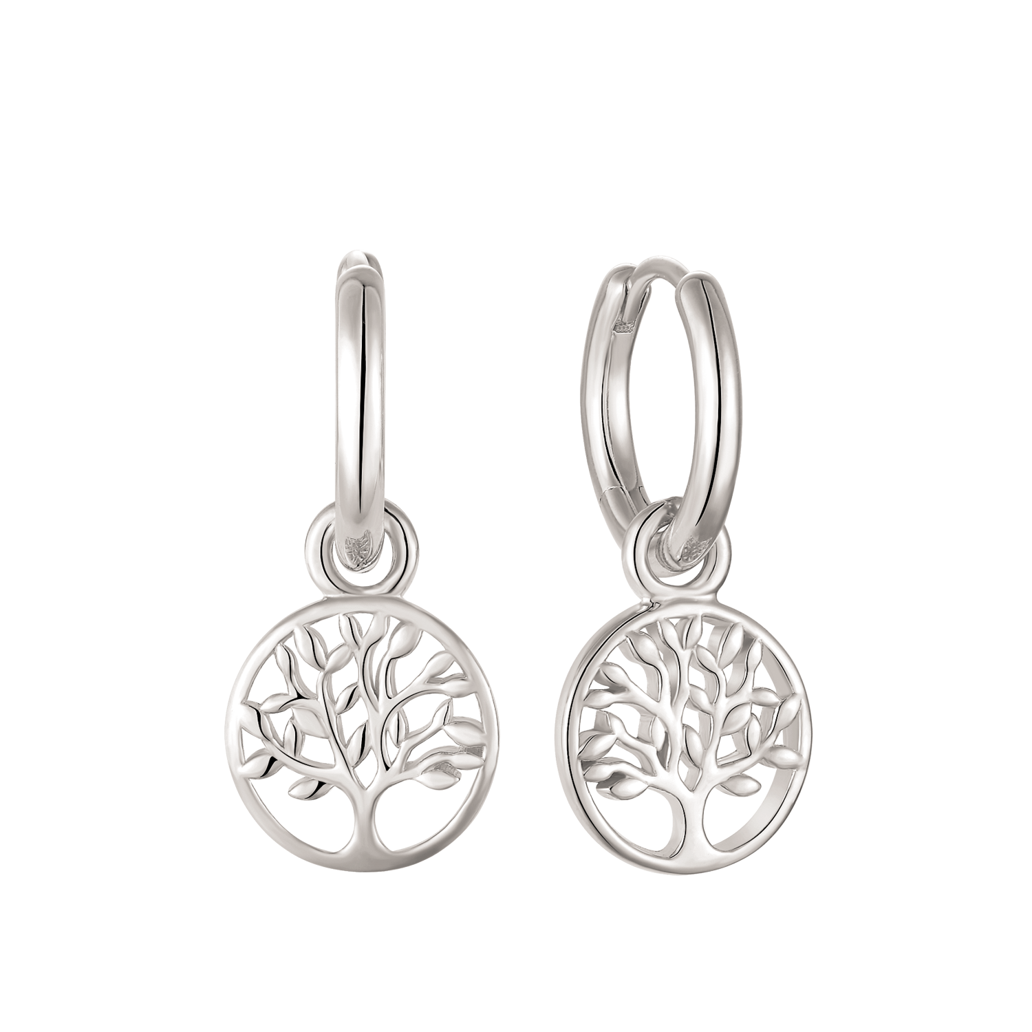 Silberner Sprengring mit hängendem Lebensbaum. Abmessungen: 10 x 1,5 x 11 mm