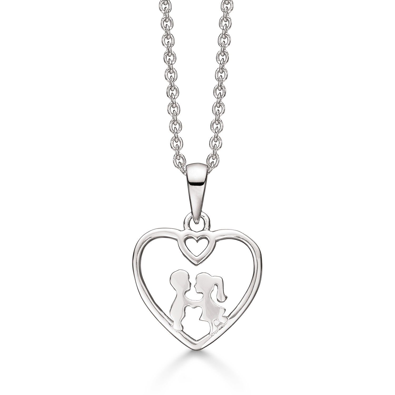Liebeskette Silber rhodiniert Herz mit Liebespaar