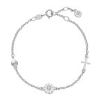 Gänseblümchenarmband mit Glaube, Hoffnung und Liebe. 7,5 x 5 mm weiße Emaille. Verstellbare Länge: 17-18-19 cm.