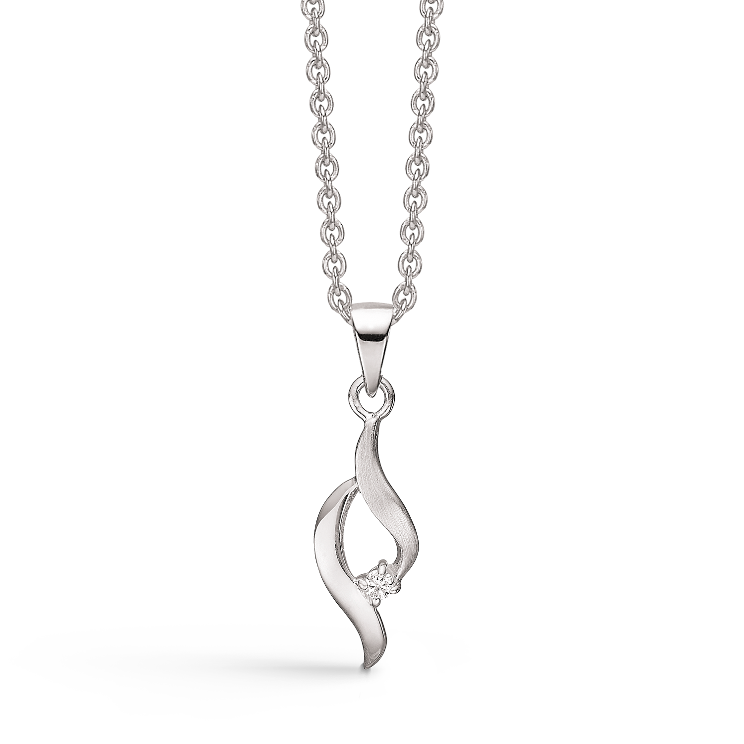 Silberhalskette rhodiniert 2 Schleifen eine matt eine glänzend mit Diamant 42-45 cm.