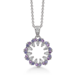 Silberkette rhodinierter Kreis mit Zirkonia am inneren Rand und rosa und lila am äußeren Rand