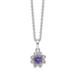 Silberkette rhodinierter runder synthetischer Amethyst mit 8 facettierten Zirkonia herum