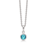 Silberkette rhodinierter runder synthetischer Aquamarin. Die Kette ist aus rhodiniertem Silber und hat eine Länge von 42-45 cm.