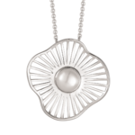 Silberne Halskette Blume aus Linien und Süßwasserperle