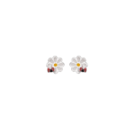 Silberne Ohrstecker Blume mit weißer und gelber bleifreier Emaille mit Marienkäfer.