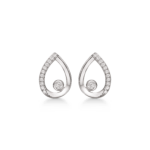 Silberohrring rhodinierter Tropfen mit Zirkonia auf einer Seite und einem großen in der Mitte.
