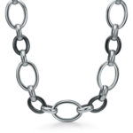 Stahlkette ovales Glied abwechselnd schwarze Keramik und Stahl. Länge 44,5 cm.