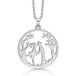 Arkandi Lebensbaumkette mit Frau und Mann – 42-45 cm Lebensbaumkette in Silber, von Arkandi aus Dänemark. Die Kette ist mit schützendem Rhodium überzogen. Eine Rhodiumbeschichtung verleiht dem Stück eine glänzende Oberfläche und ein Aussehen wie Weißgold. Außerdem hat eine Rhodiumbeschichtung den Vorteil, dass sich der Schmuck nicht verfärbt und die Oberfläche haltbarer macht. In der Mitte des Anhängers befinden sich eine Frau und ein Mann. Die Kette hat eine Länge von 42-45 cm.